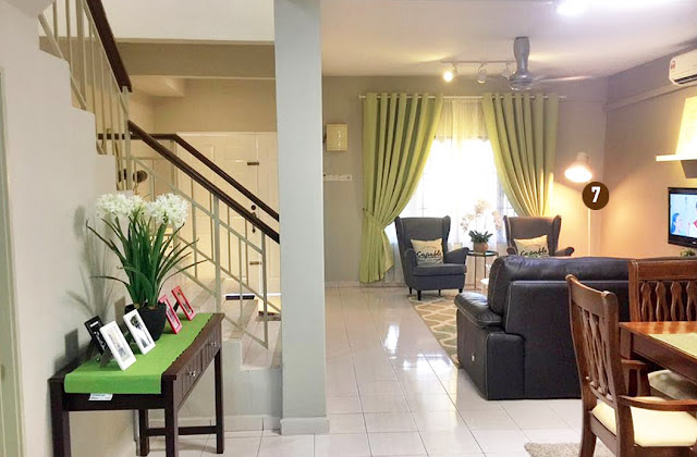 Digabungkan pula dengan kawasan beranda yang santai dengan koleksi kerusi IKEA dan langsir putih. Memang nampak tenang.